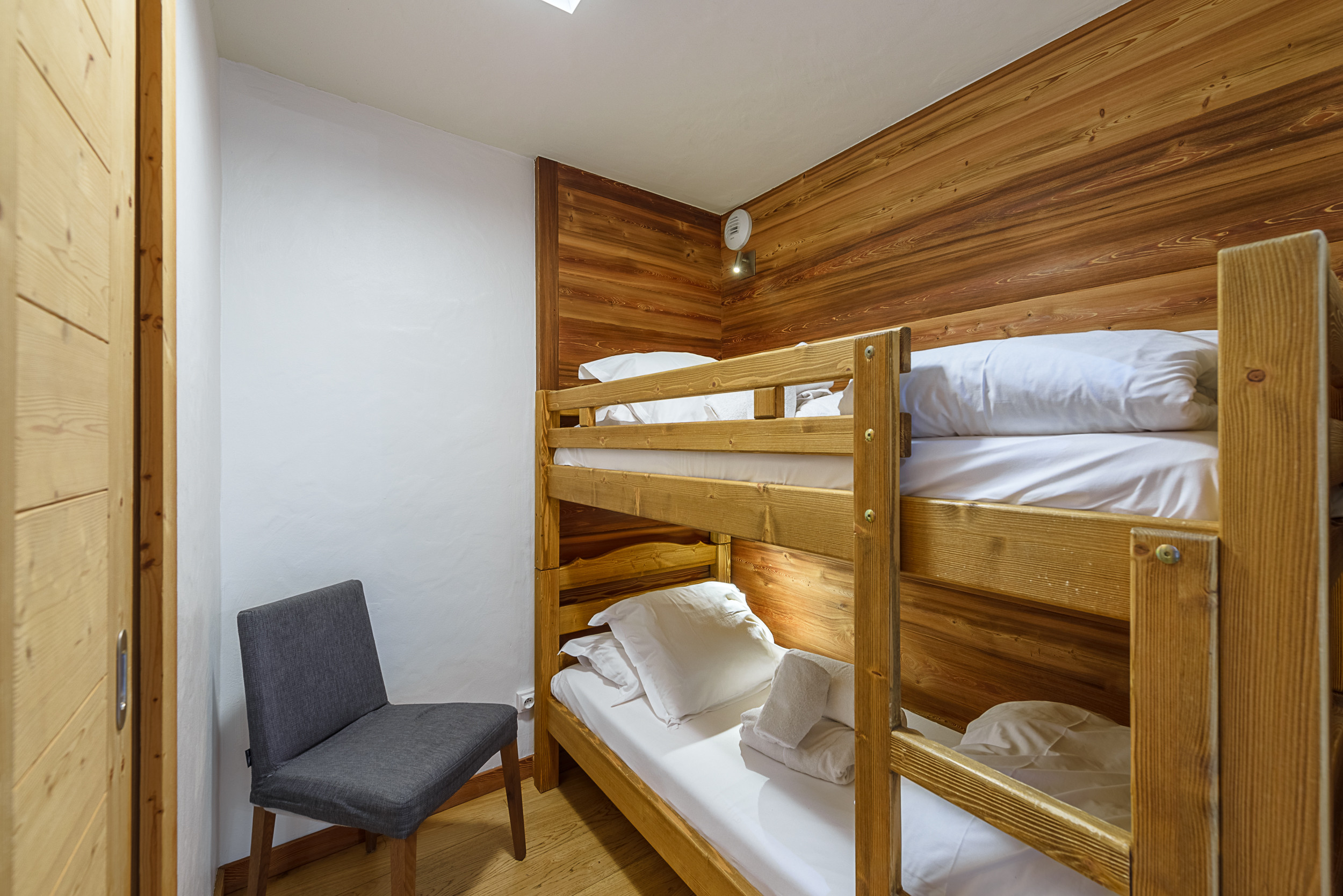 The living room, with its large bay window, opens onto a terrace of around 107sqf for flats on the 1st floor, or onto a 64sqf balcony for those on the upper floors. All flats face due south, with views of the mountains and the village of La Clusaz.