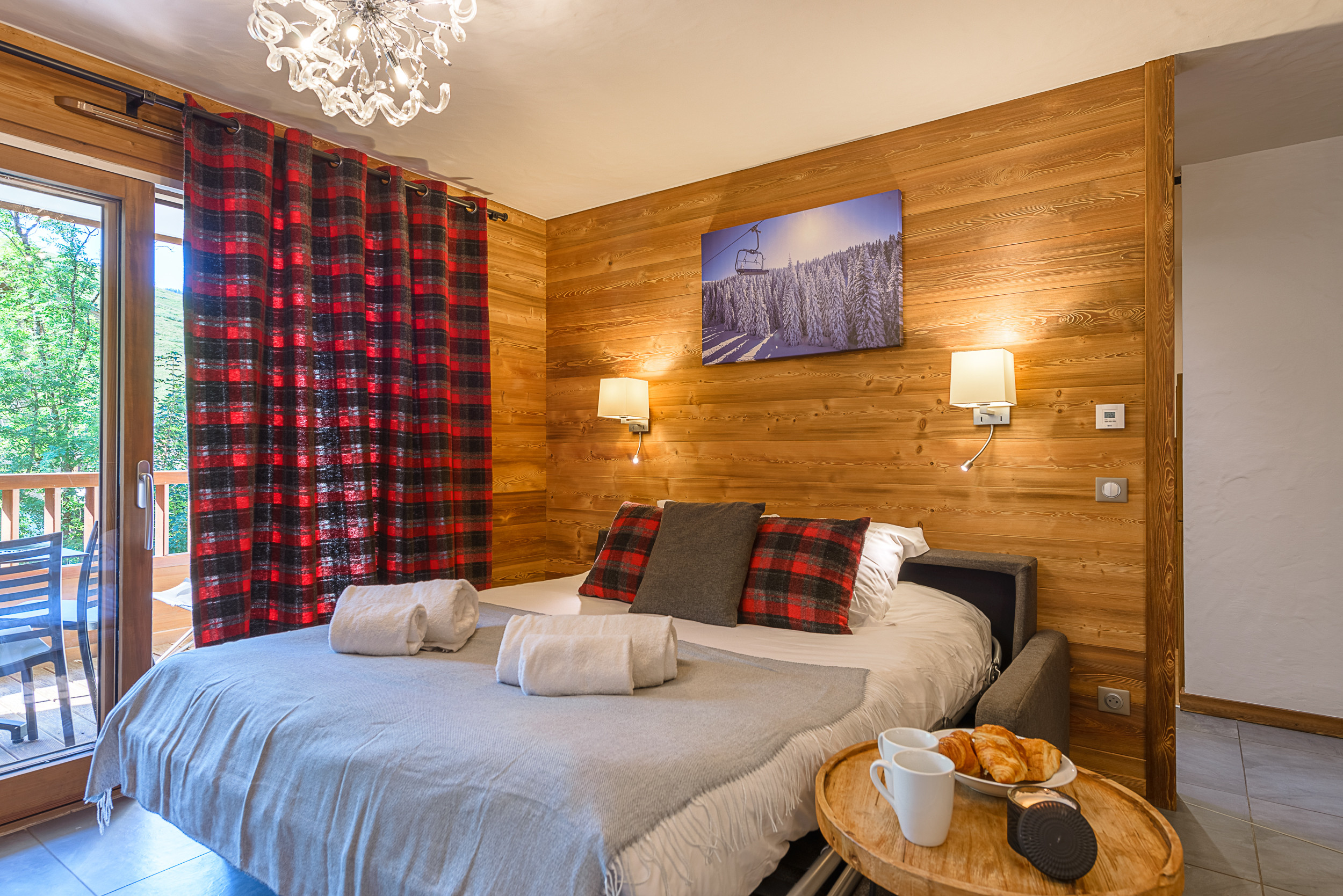 - A south-facing balcony (or terrace if flat is on level 1) with views of the mountains and the village of La Clusaz.