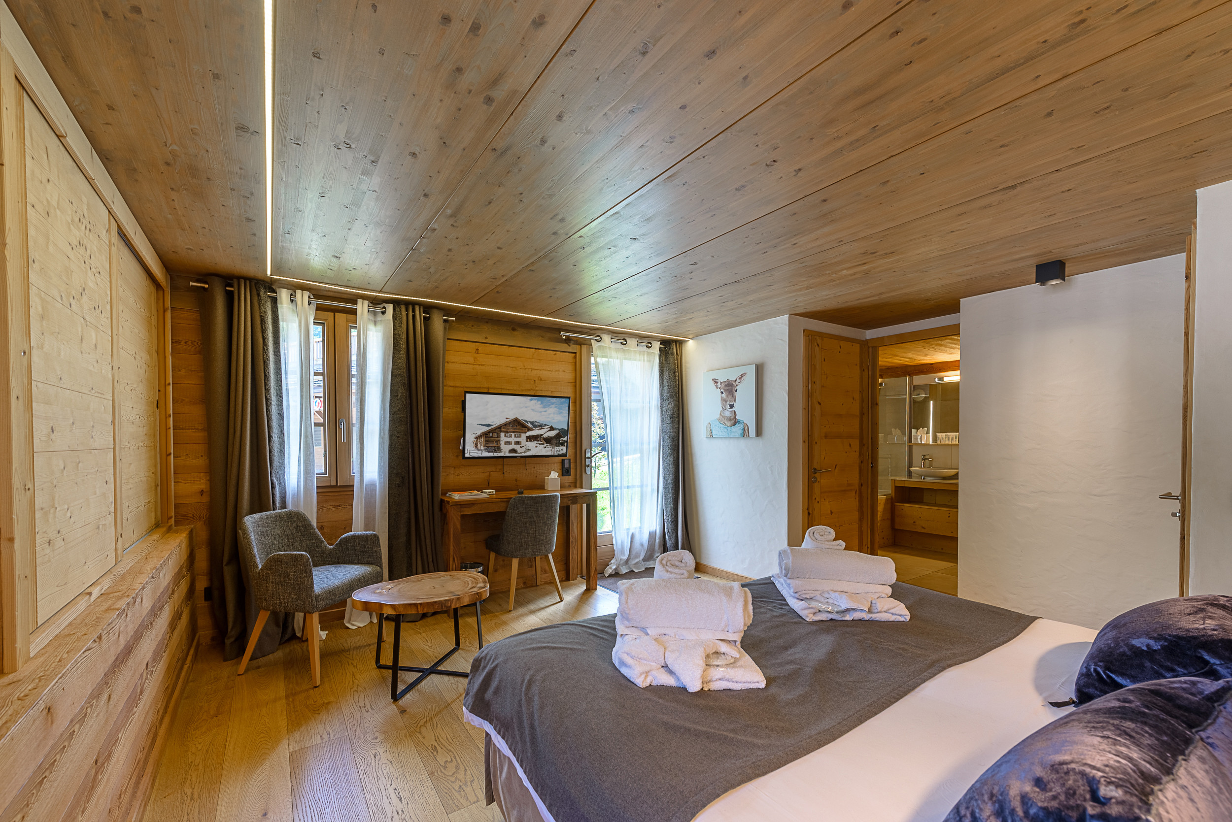 Set in a former farmhouse, it consists of 2 half-chalets offering the possibility to be rented in full thanks to removable partitions on the top floor. Here, each bedroom has its own en-suite bathroom and private toilet.