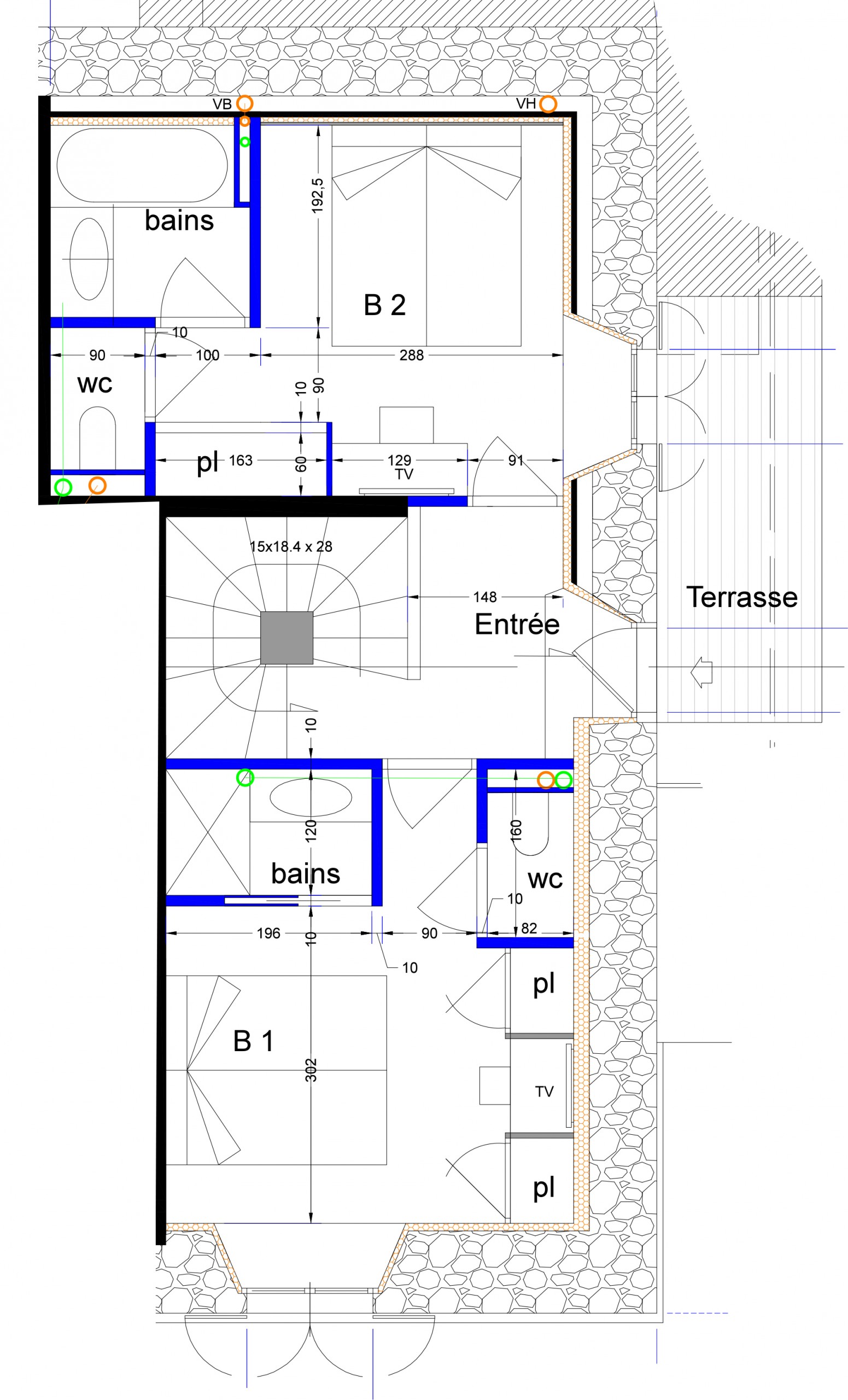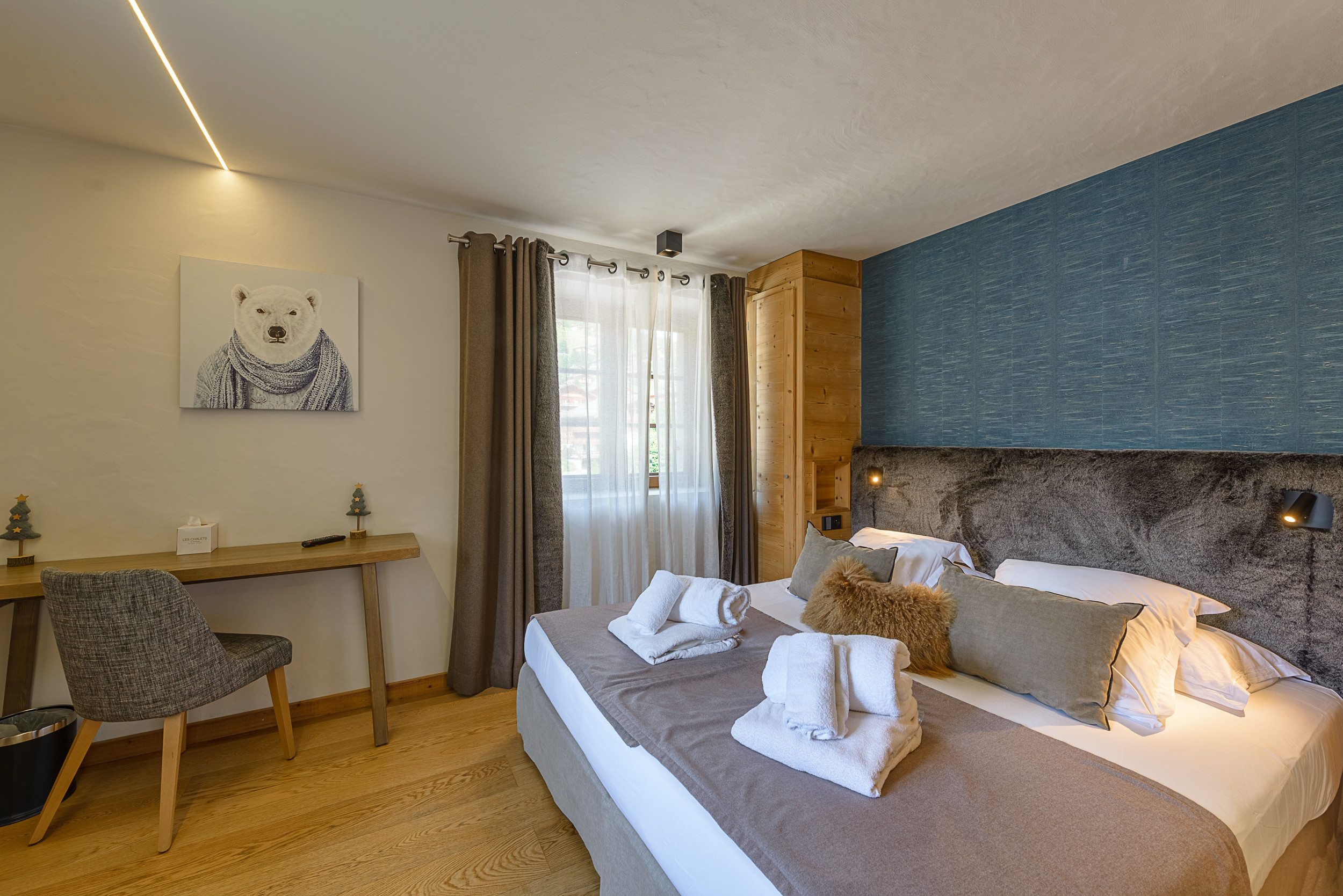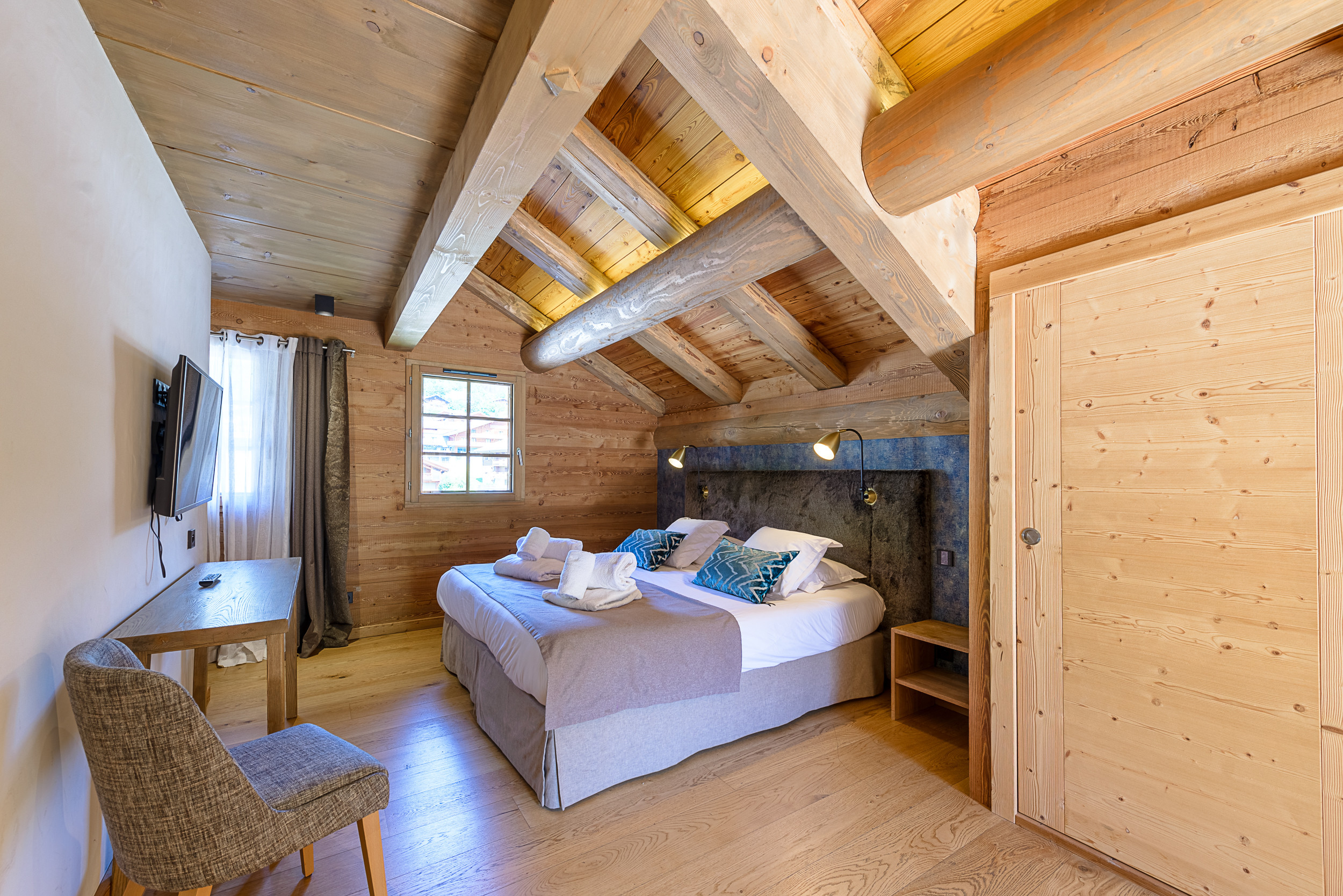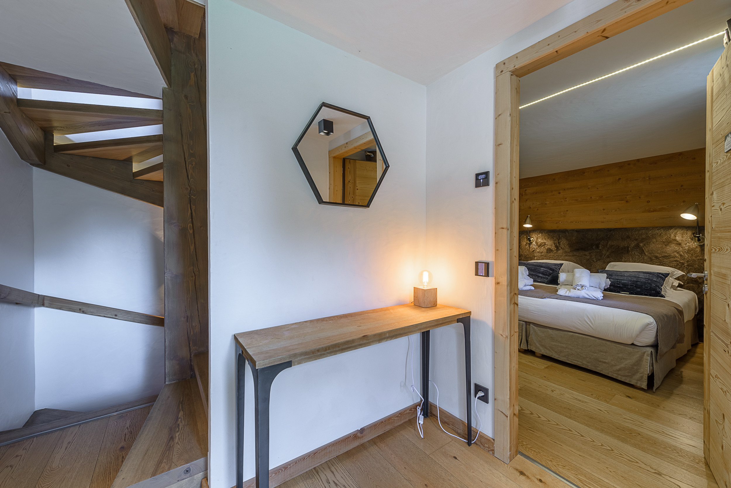 Set in a former farmhouse, it consists of 2 half-chalets offering the possibility to be rented in full thanks to removable partitions on the top floor. Here, each bedroom has its own en-suite bathroom and private toilet.