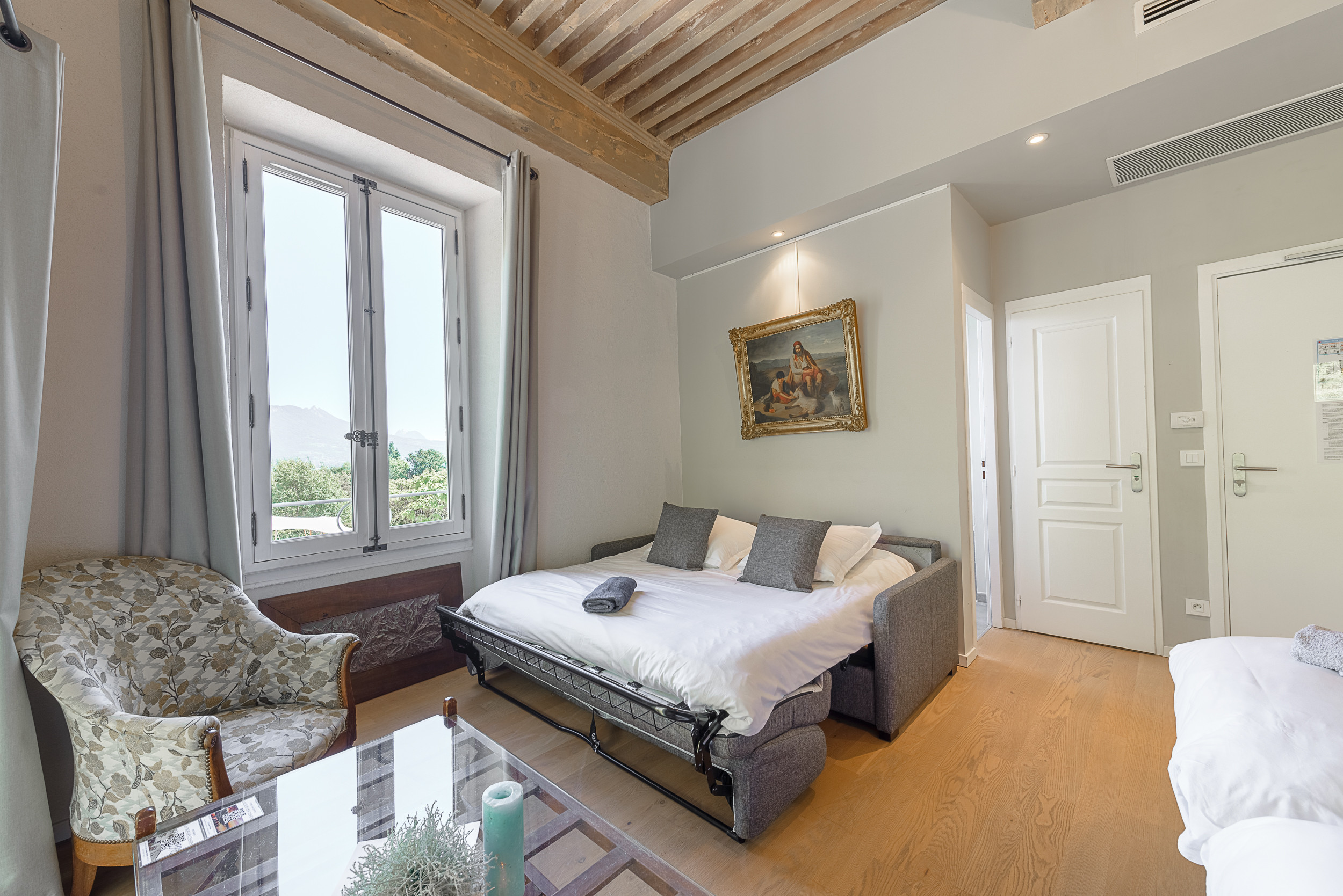 - Semnoz Room: 2 single beds twinnable (90x200), Double sofa bed (160x200), shower room with WC