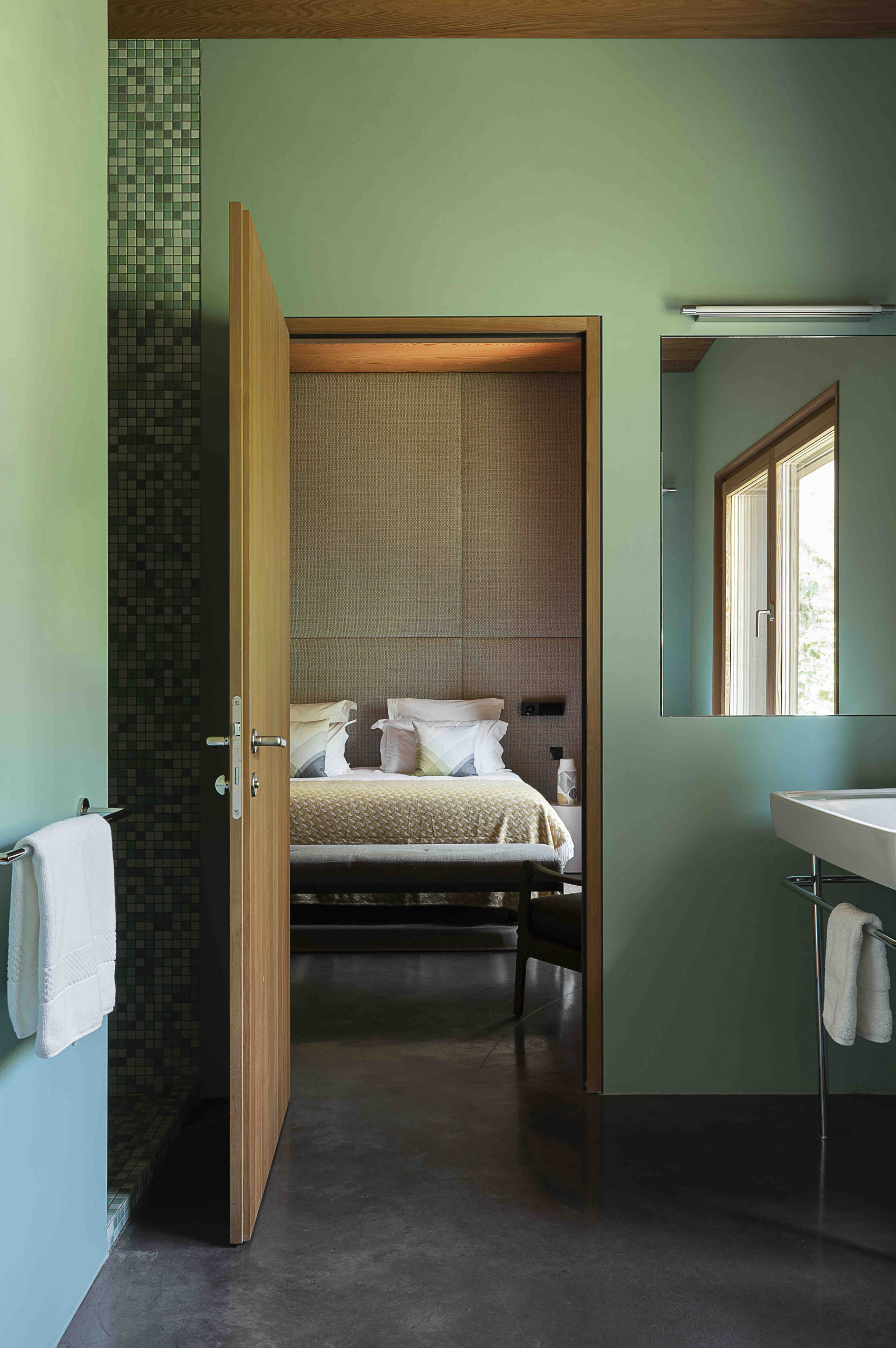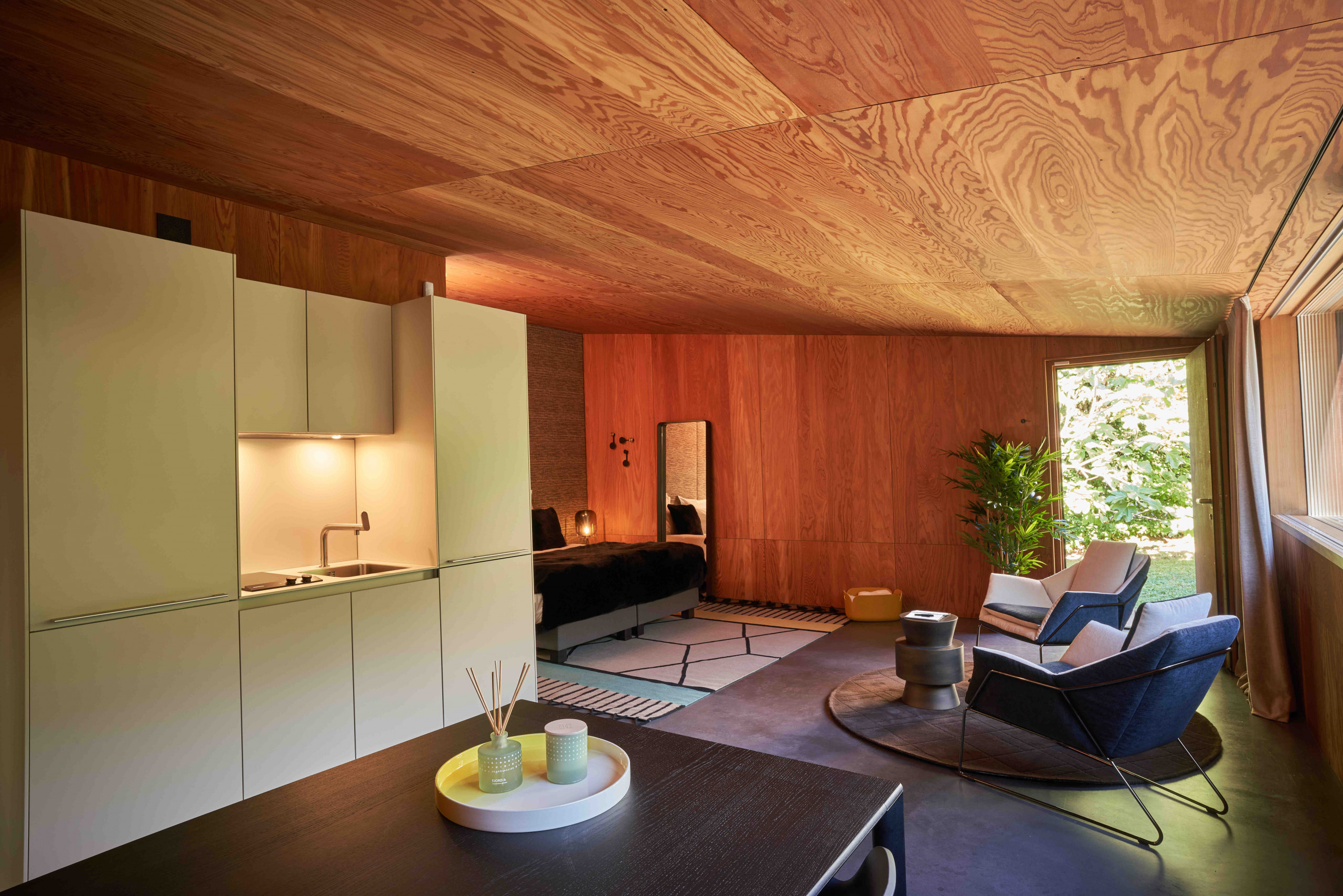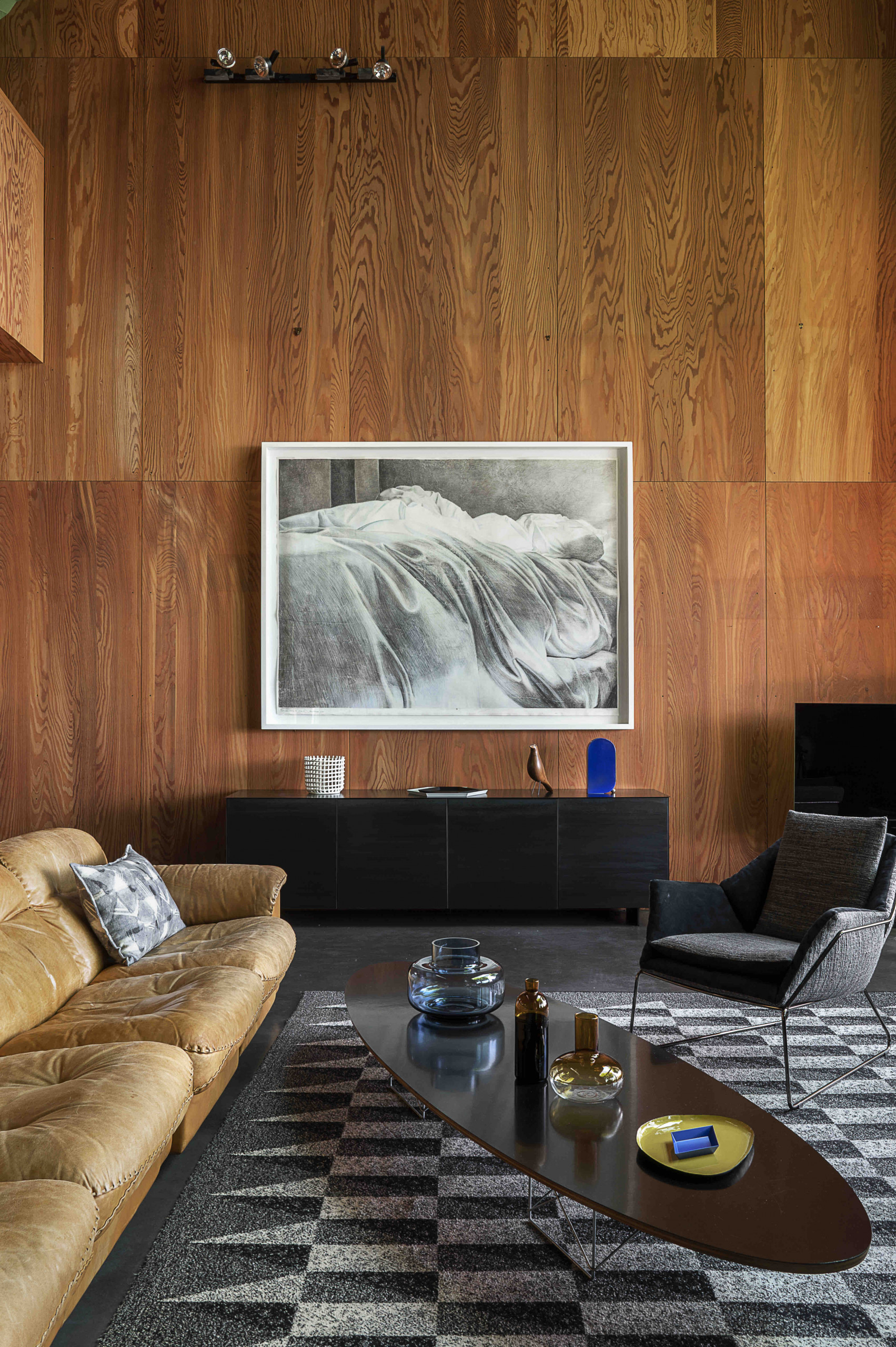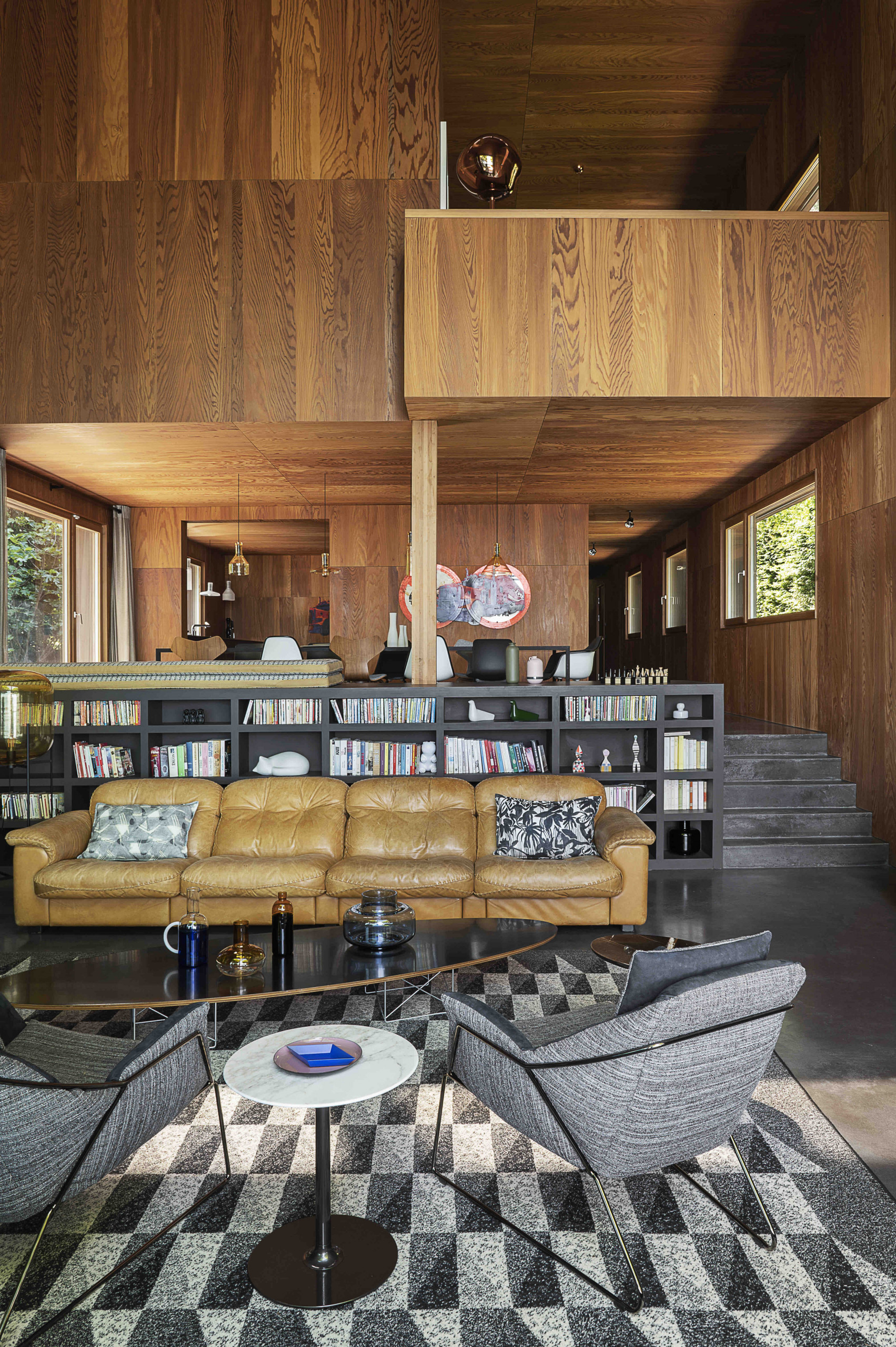 Its creator wanted it to be long, guiding the eye towards the horizon and inviting it to get lost in the distance on the lake. Made entirely of wood, black steel and concrete, the impressive ceiling height is supported by cathedral windows and a large patio window.