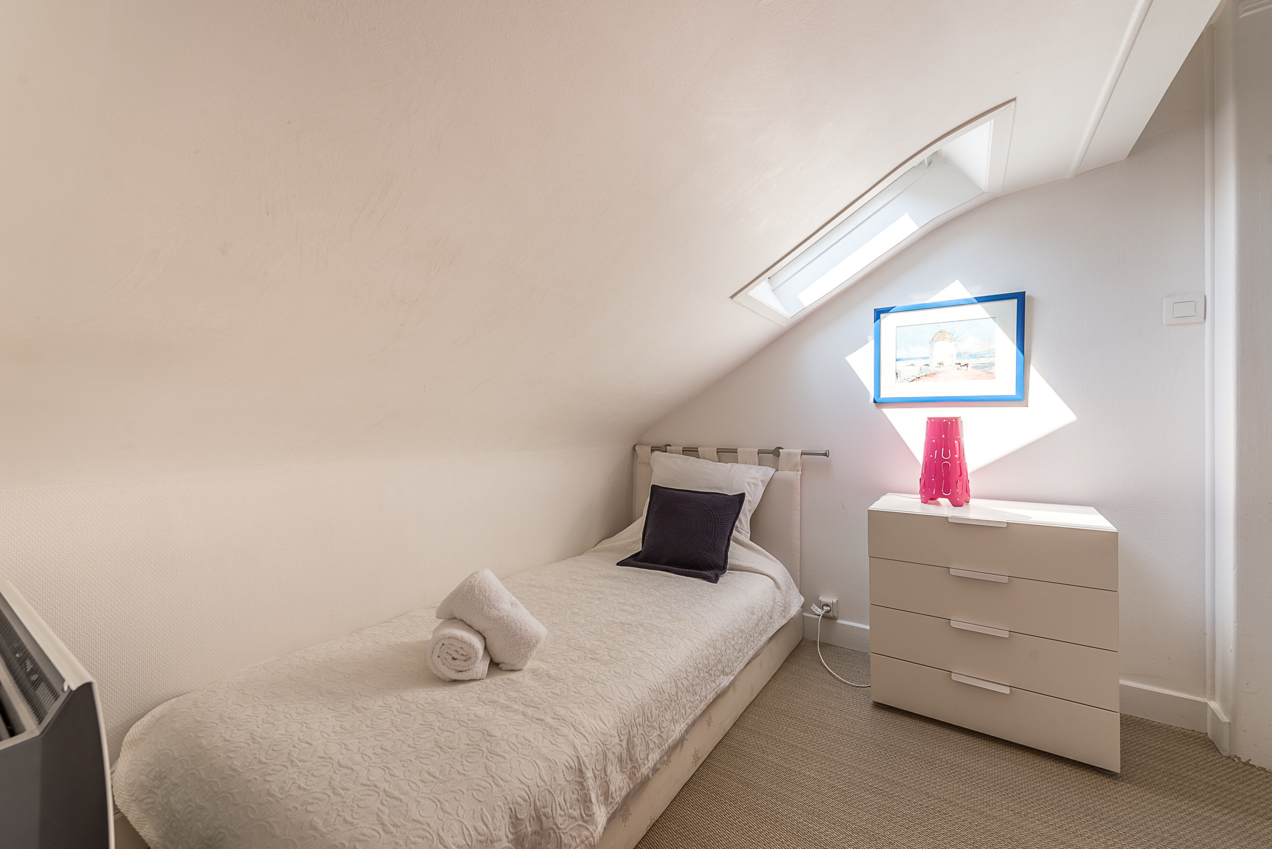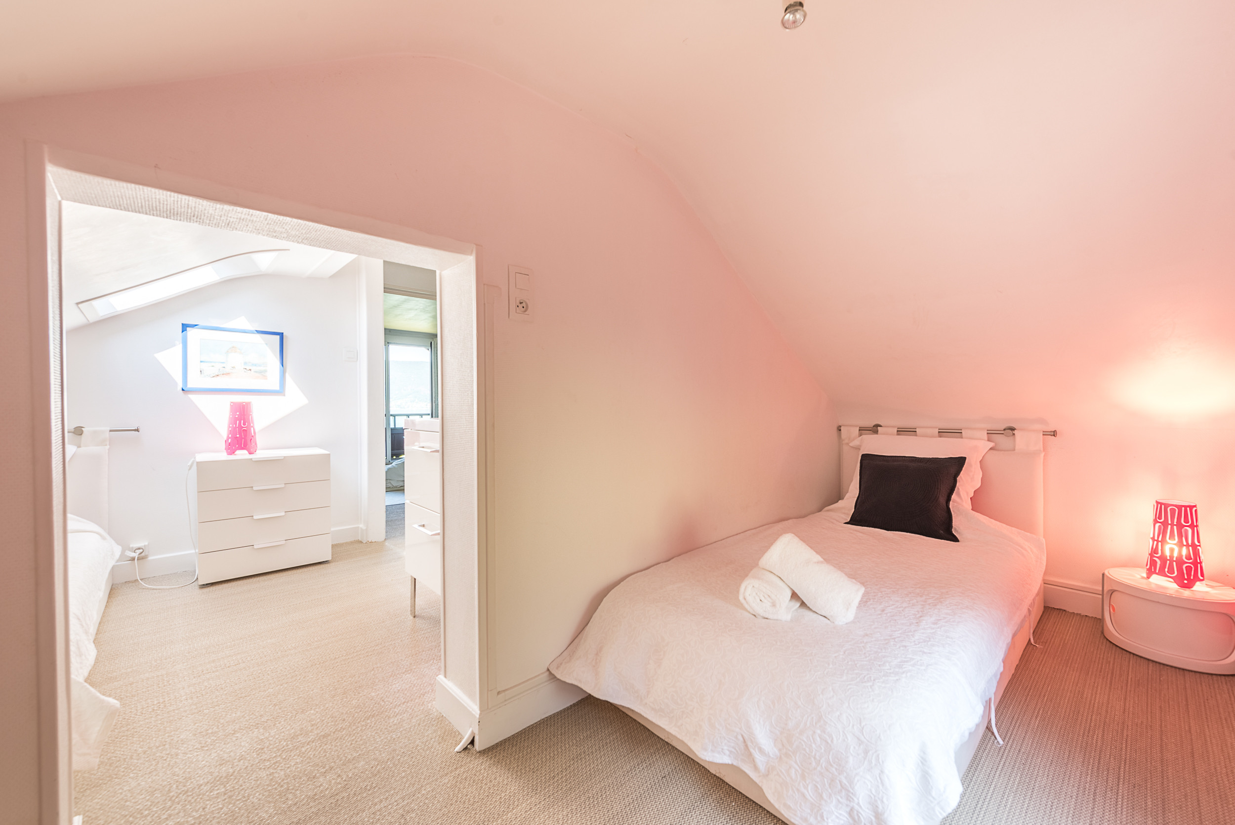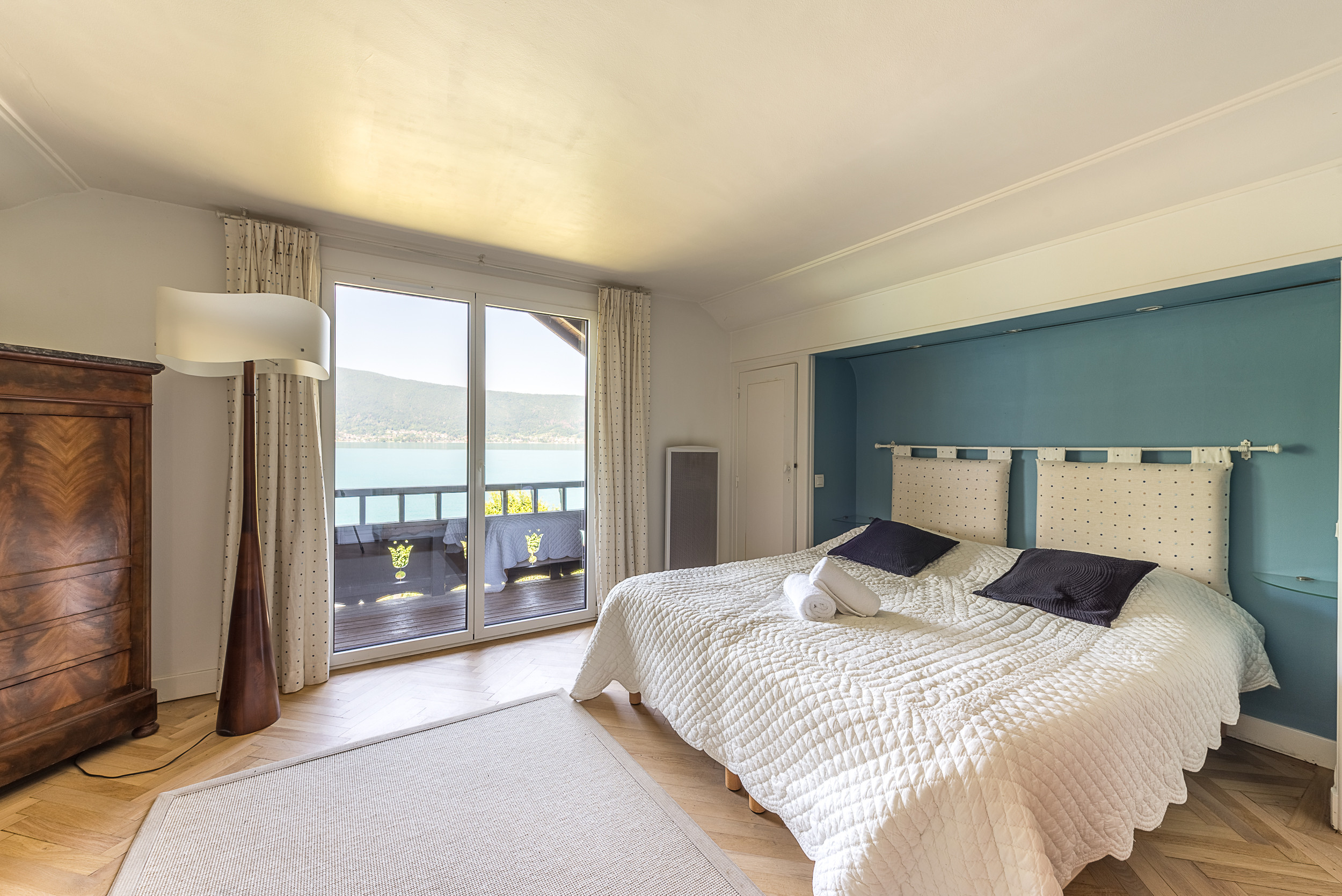 - Master bedroom with 2 single beds (80x200cm) which can be joined to form a double bed of 160x200, balcony and lake views